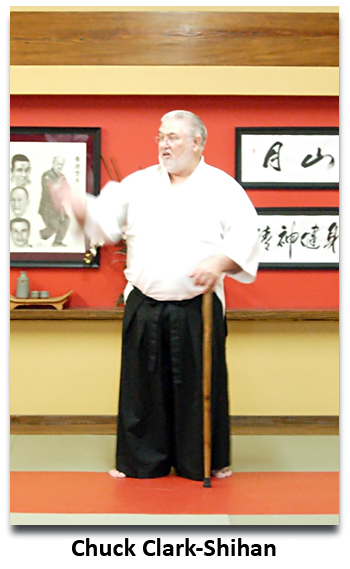 Chuck Clark was born in 1947 and began Budo training at the age of six and has continued his practice through the present. Clark-Sensei has studied in the U.S., France, Japan, Canada, and Republic of South Vietnam, and is Jiyushinkai 8th dan, Shihan. He has also practiced Kodokan Judo, Karate-do, Japanese Jujutsu, Shinto Muso Ryu Jodo and T'ai chi ch'uan. Clark-Sensei has trained under a number of top-level teachers, and has been most strongly influenced by F. Fujita, J. Bayless, R.L. Willingham, E. Cates, F. Hatashita, K. Geis, T. Miyake, P. Relnick, and T. Nishioka.